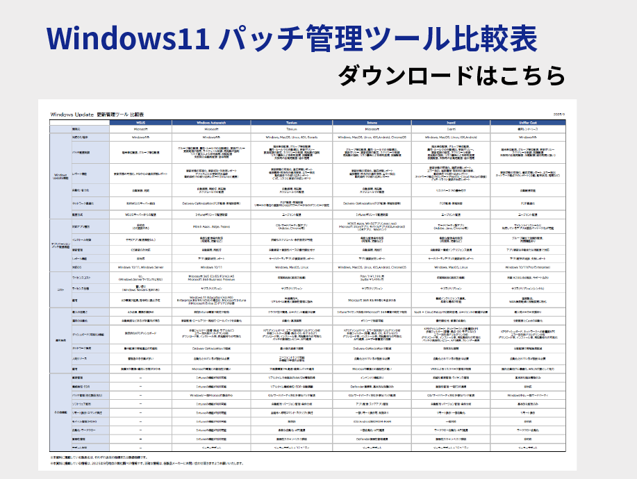 2025年10月14日にWindows 10のサポートが終了し、多くの企業ですでにWindows 11の本格運用が始まっています。今、企業の関心は更新管理の課題に集まっており、月1回のペースで配信されるWindows Updateの更新プログラム適用は、セキュリティ強化のために必須の作業ですが、運用の現場では様々な問題に直面しています。