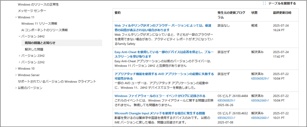 しかし、より重要なのは、更新プログラムの適用前に「情報収集」を徹底することです。Microsoftは毎月、既知の問題に関する情報を公式サイトで公開しています。この「既知の問題」を確認することで、適用しようとしている更新プログラムによって発生する可能性のある問題を事前に把握し、リスクを回避することができます。また、公式の情報は出ていない不具合情報がSNSなどに出ている場合もあるので、幅広く情報収集することをお勧めします。更新プログラム適用前にこれらの情報を確認する運用は、IT管理において不可欠と言えるでしょう。