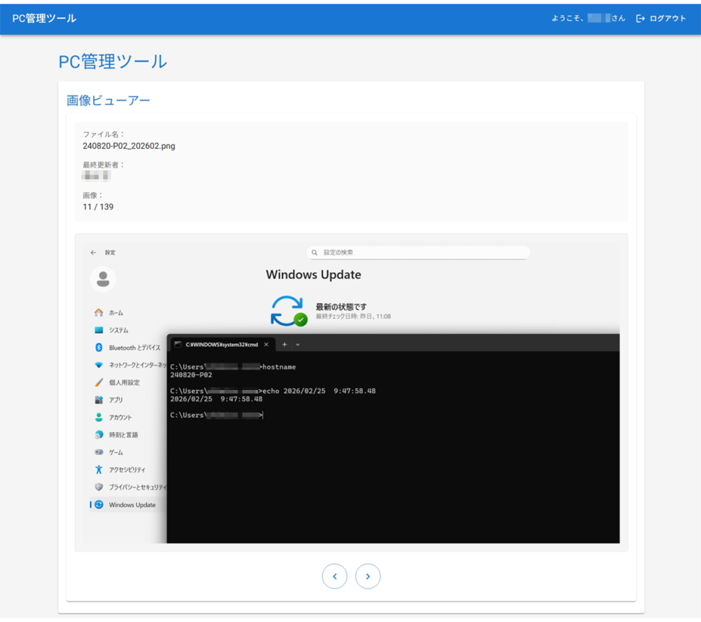 毎月 2 時間かかっていたエビデンス確認作業が 1 時間に削減SharePoint上のエビデンス画像確認を支援するWebアプリを開発し、毎月約2時間かかっていた確認作業を約1時間へ短縮(50%削減)しました。 従来はエビデンス画像を1枚ずつ手動で開いて確認していましたが、Webアプリ上で連続表示できるようにしたことで、確認作業の効率化を実現しました。