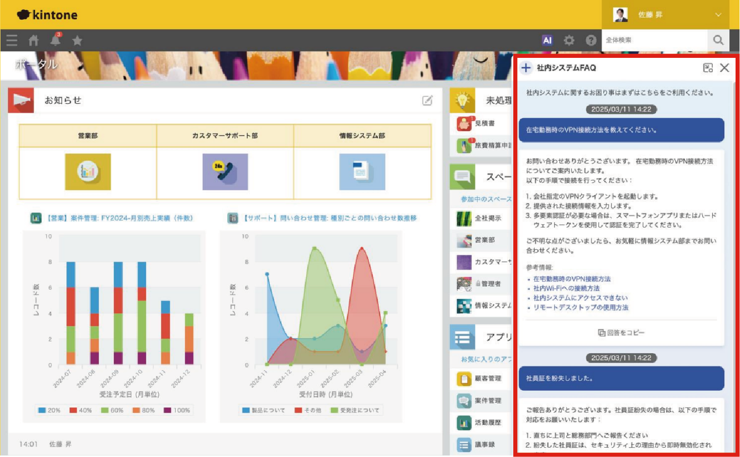 社内システムに関する同じような質問が、総務部や情報システム部へ何度も寄せられ、担当部署の業務を圧迫していませんか。