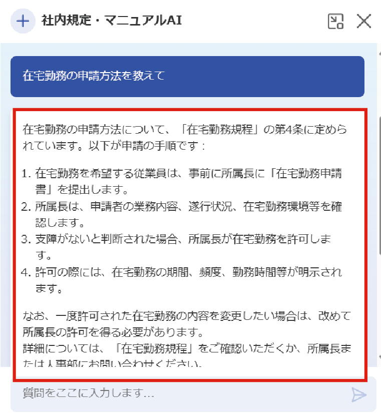 チャットで質問するとAIが回答